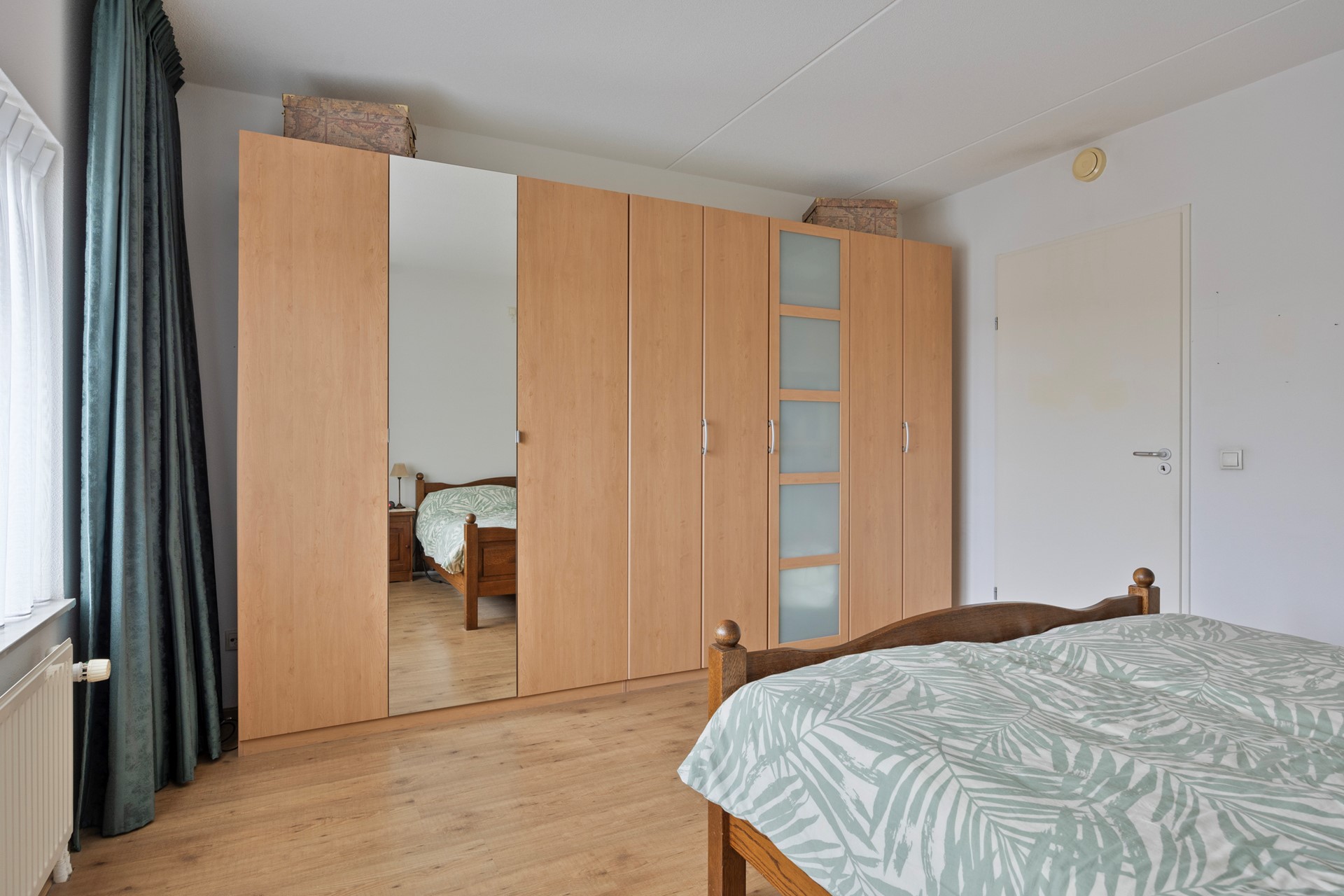Slaapkamer I: Direct links vanuit de hal bevindt zich de eerste slaapkamer (ca. 8 m²). Deze kamer is netjes afgewerkt en geschikt voor diverse doeleinden, zoals logeerkamer of werkkamer. De ramen zijn voorzien van screens, ideaal vanwege de zuidwestelijke ligging aan de galerij.