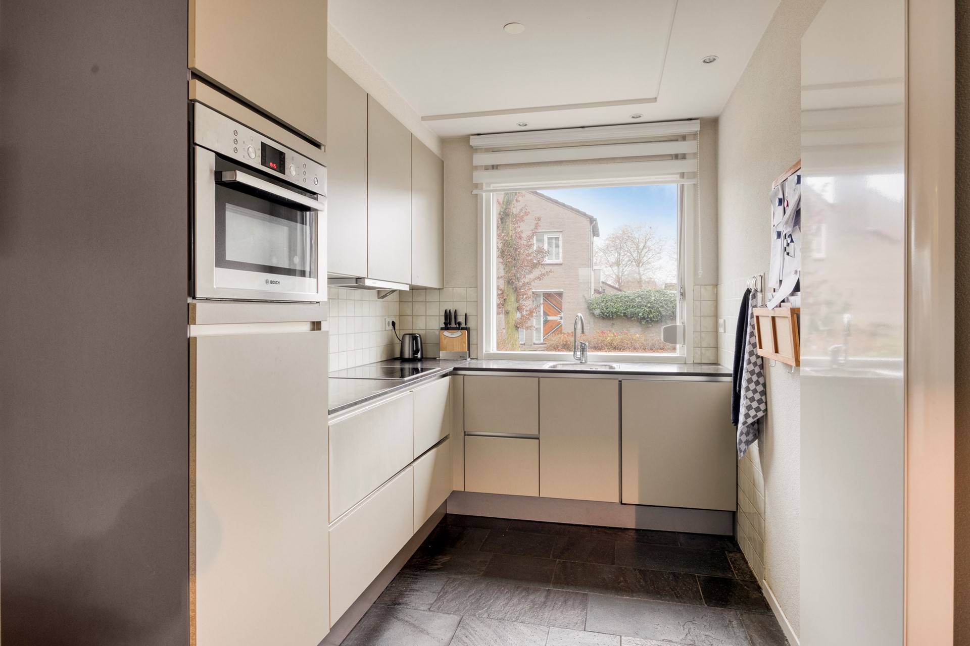 De open keuken ligt aan de voorzijde van de woning en is uitgerust met een koelkast, combimagnetron, keramische kookplaat, afzuigkap, plintboiler en vaatwasser. De keuken is ruim opgezet en biedt daardoor veel werk- en opbergruimte, ideaal voor de hobbykok.