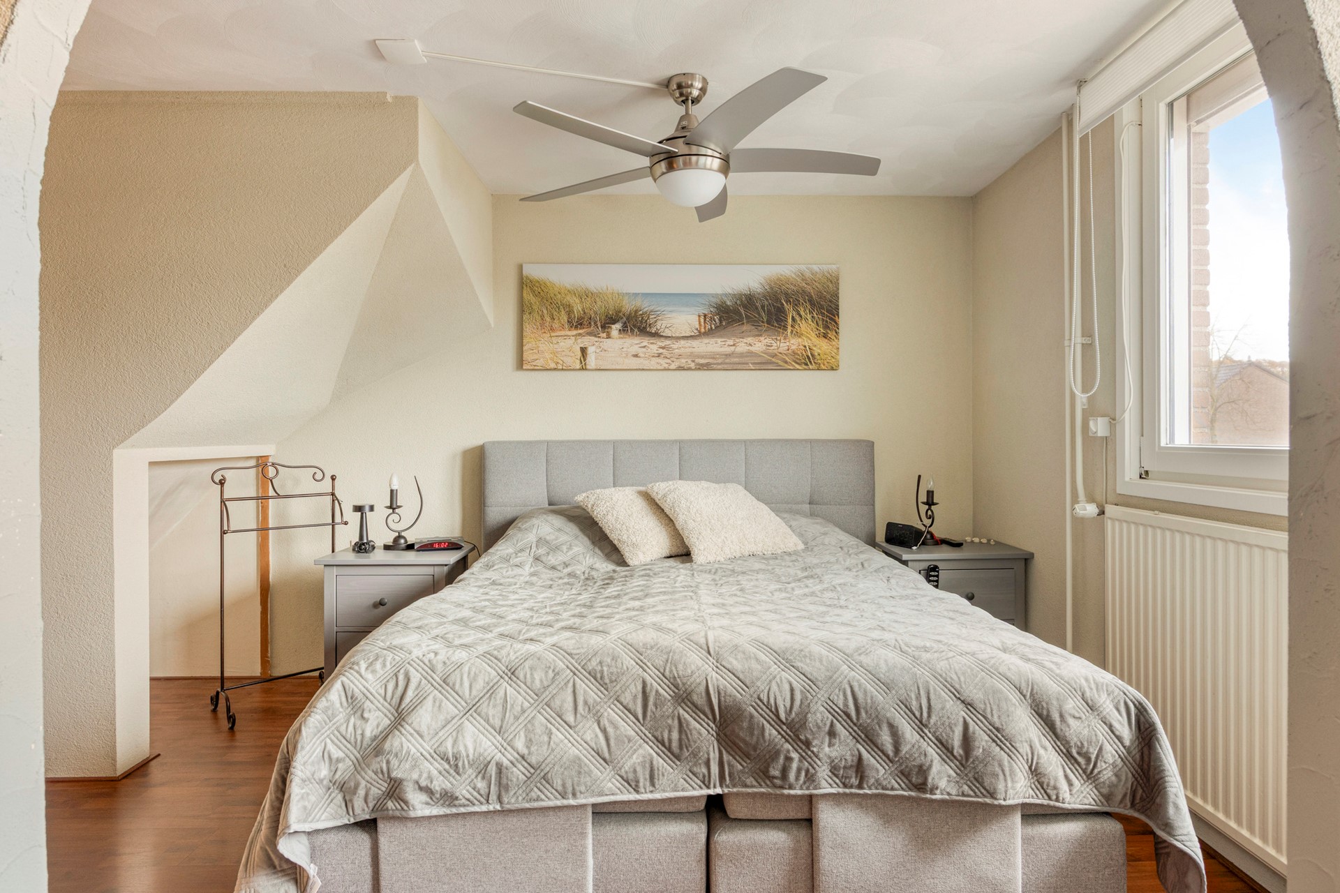 De grote slaapkamer aan de voorzijde beschikt over een walk-in closet en een ruime inbouwkast, waardoor de kamer optimaal te gebruiken is. De raampartijen zijn voorzien van elektrische rolluiken.