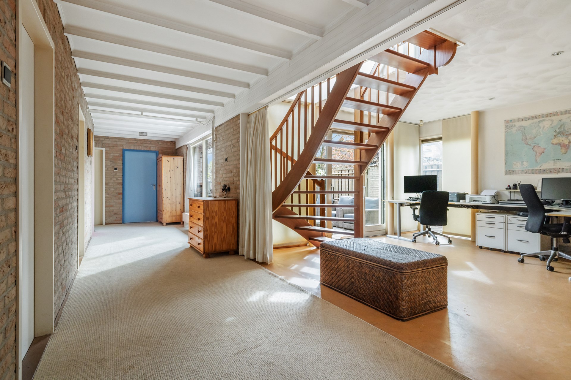 Via de vaste trap in de aanbouw bereikt u de volwaardige vijfde slaapkamer. Deze ruimte heeft directe toegang tot het ruime dakterras en biedt daarmee een heerlijke extra plek om buiten te zitten.