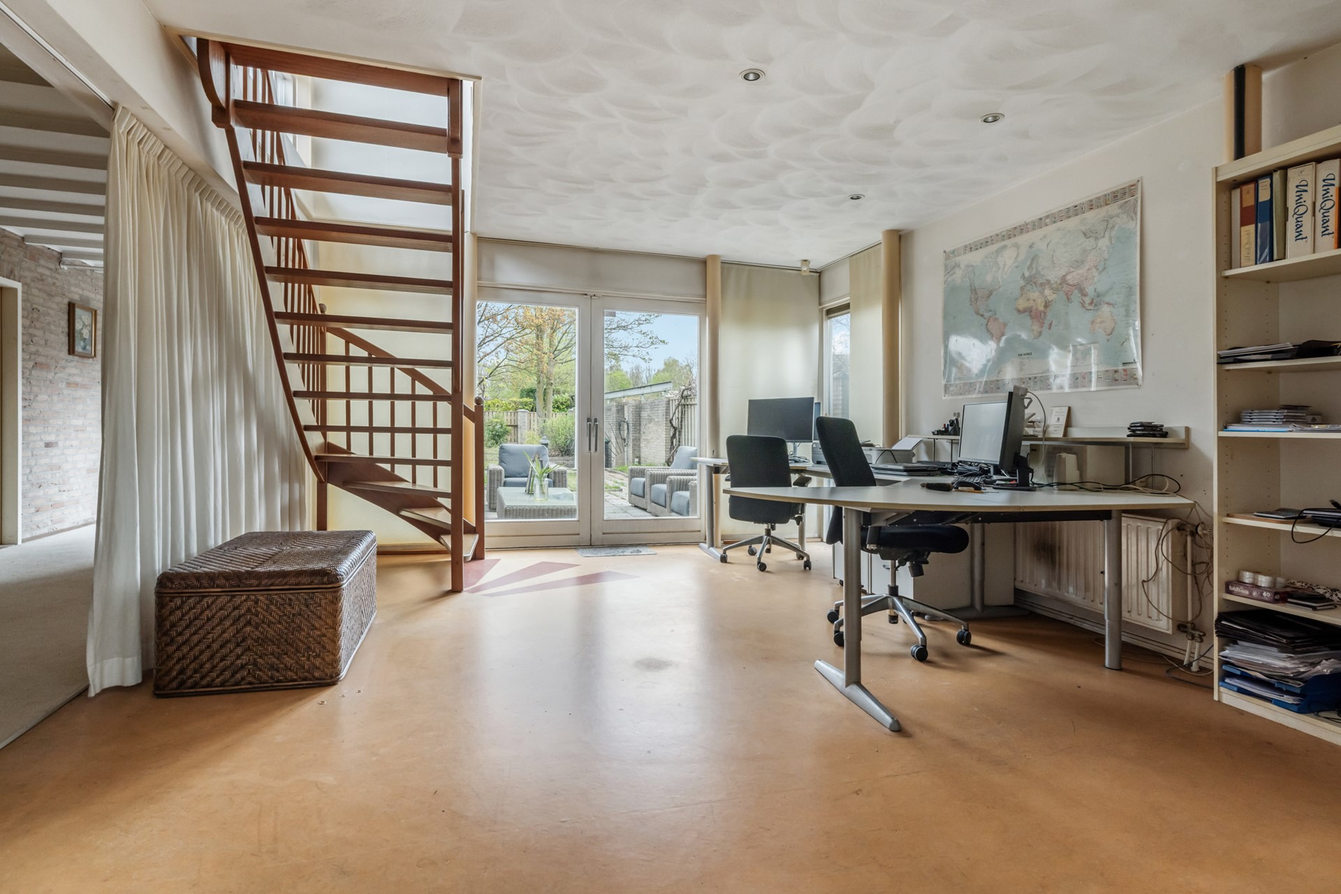 De woning is in 2000 uitgebouwd, waarbij een extra ruimte is gecreëerd die momenteel in gebruik is als kantoor. Deze ruimte is voorzien van vloerverwarming en een schuifpui naar de zonnige en groene achtertuin. Vanuit het kantoor is tevens de slaapkamer op de eerste verdieping bereikbaar.