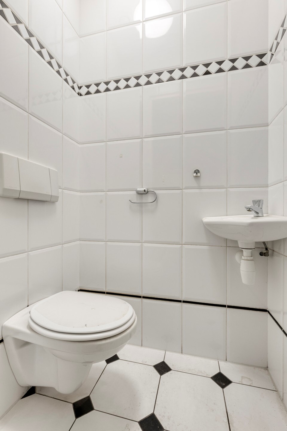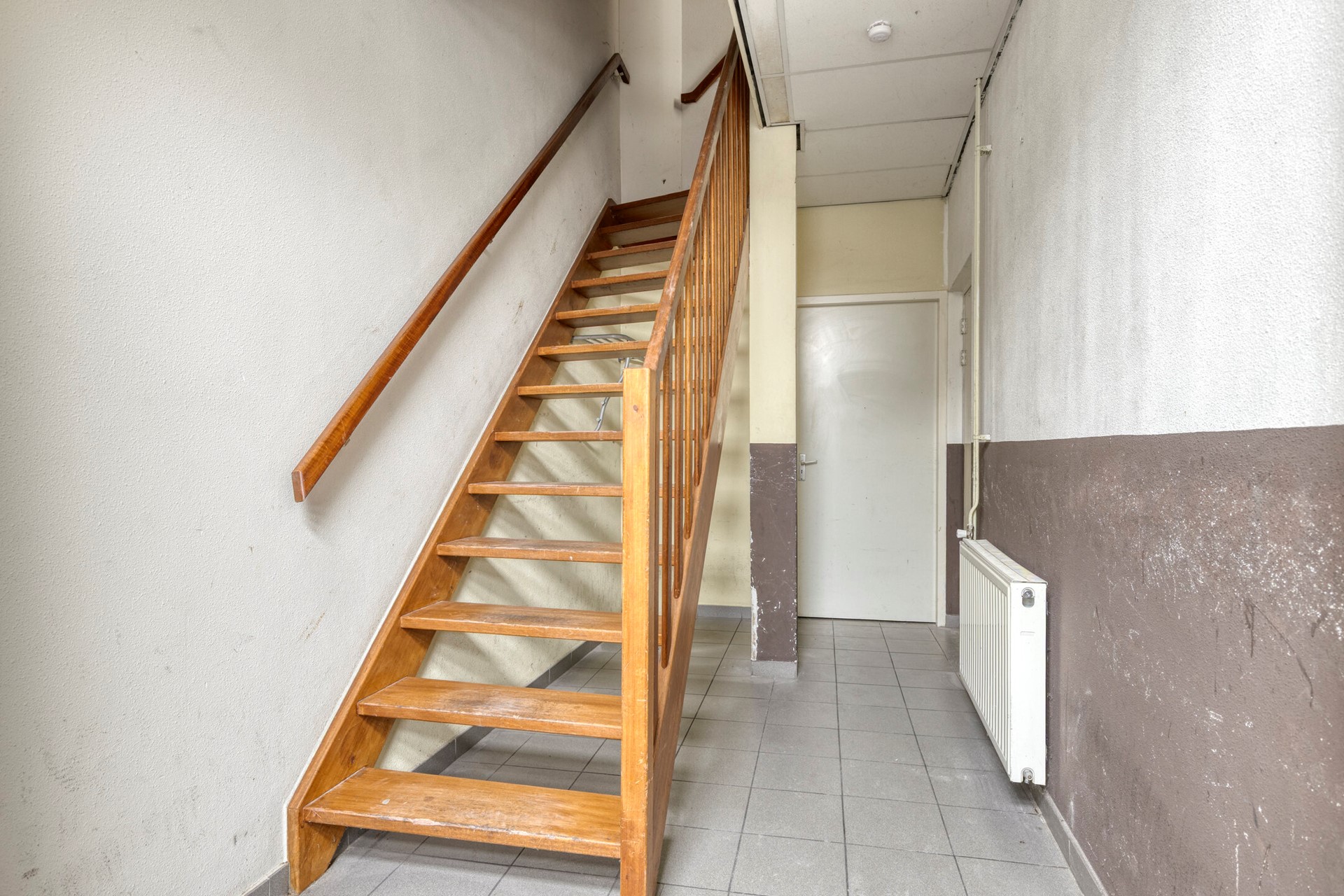 Via de trap bereikt u de overloop van de eerste verdieping. Direct aan de linkerzijde bevindt zich een toilet met fonteintje. De overloop geeft verder toegang tot de woonkamer en de vaste trap naar de tweede verdieping.