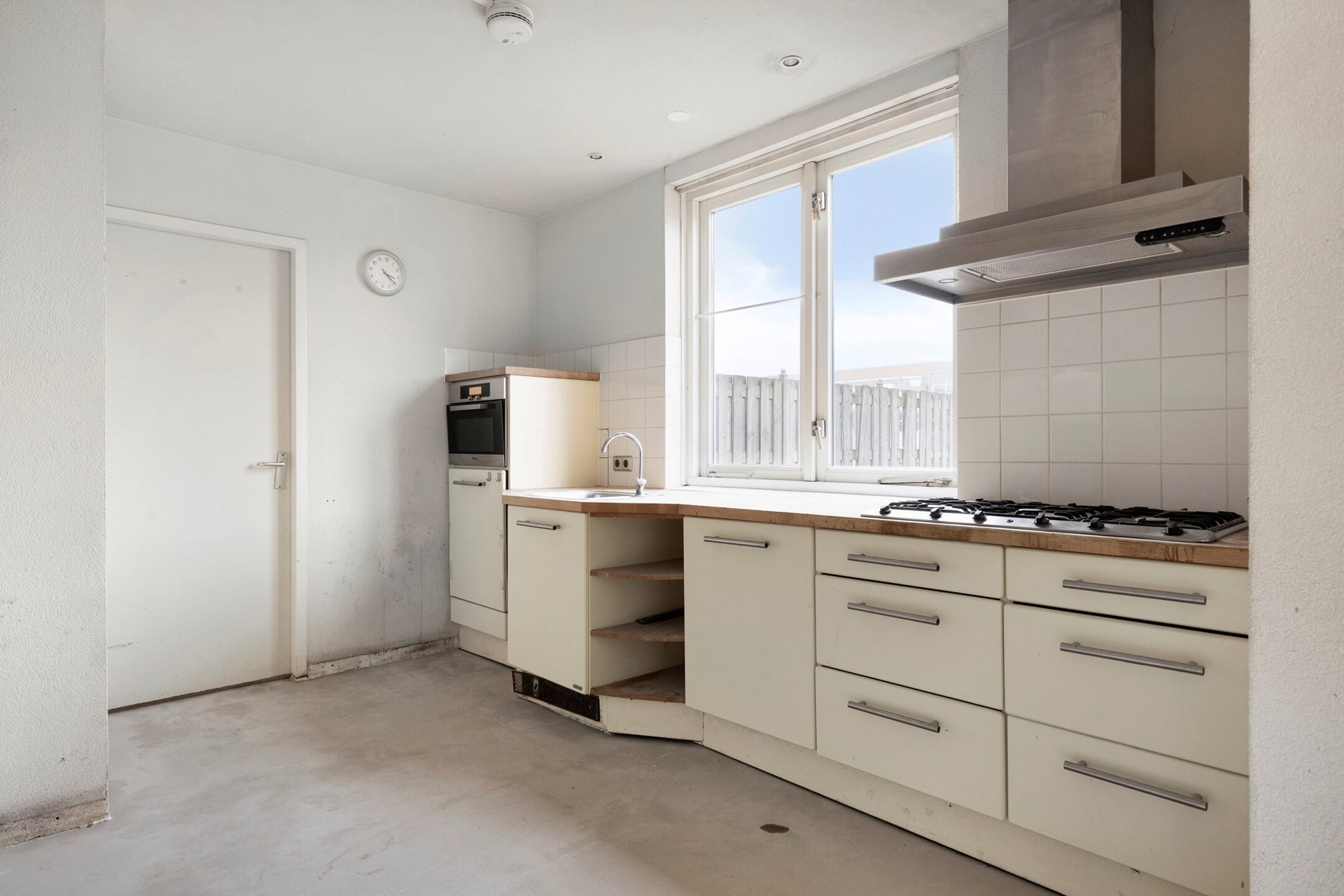 Vanuit de keuken komt u in de bijkeuken, die eveneens toegang geeft tot het dakterras.